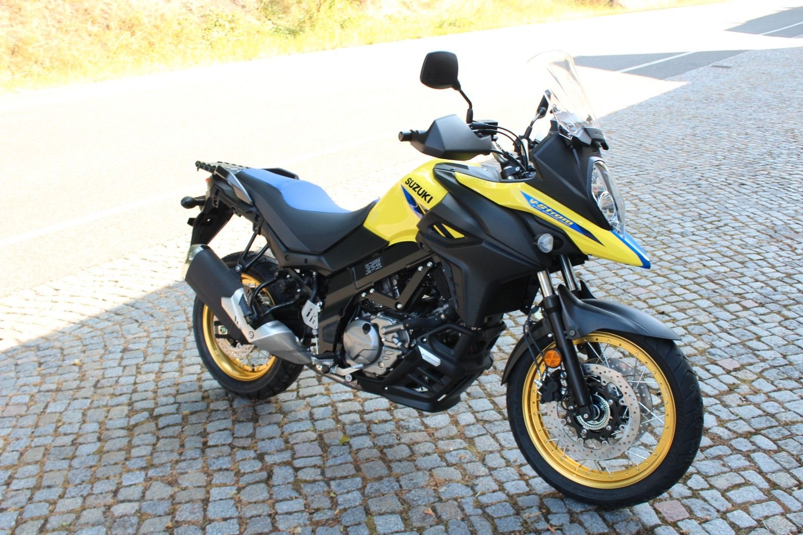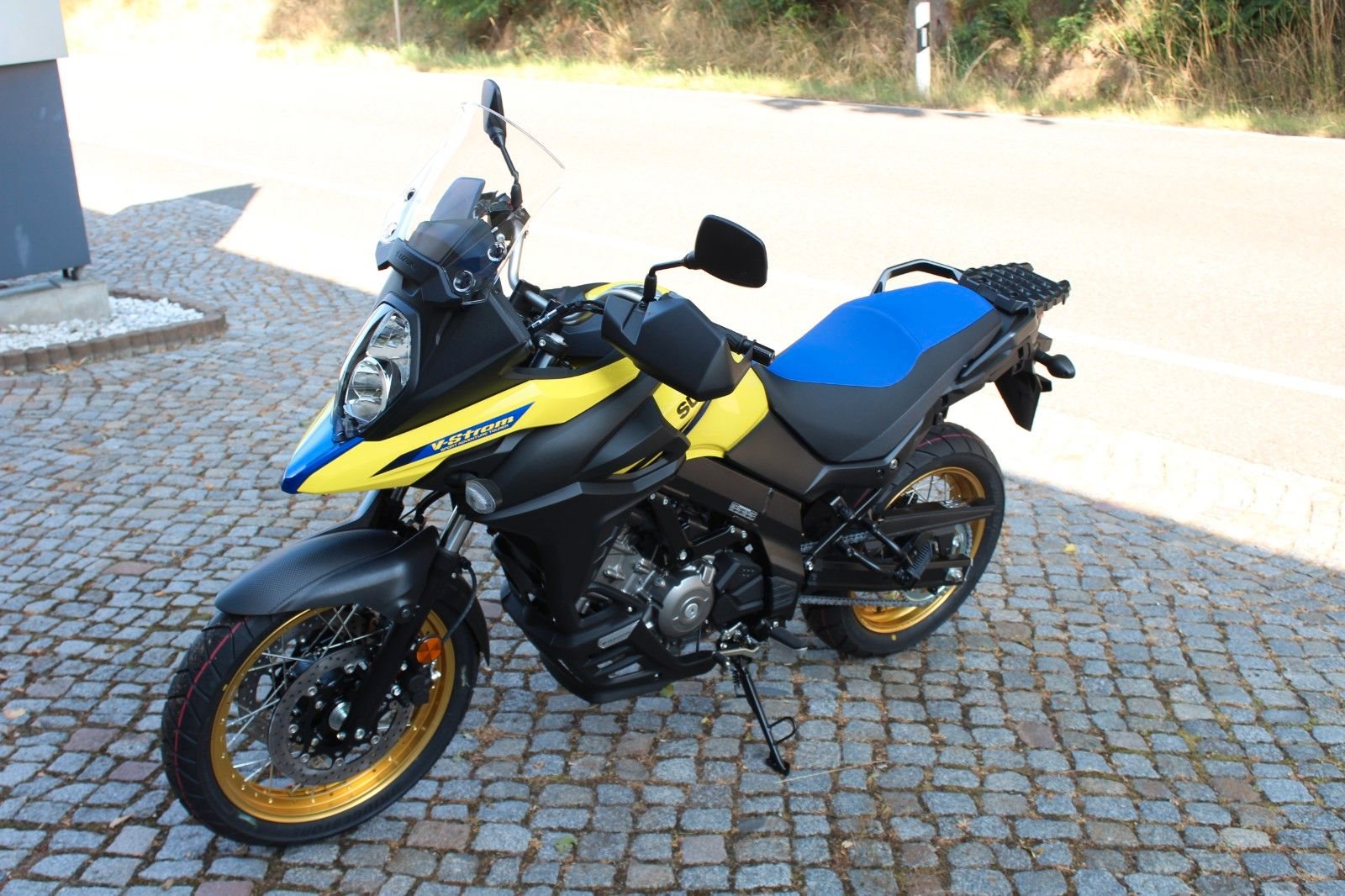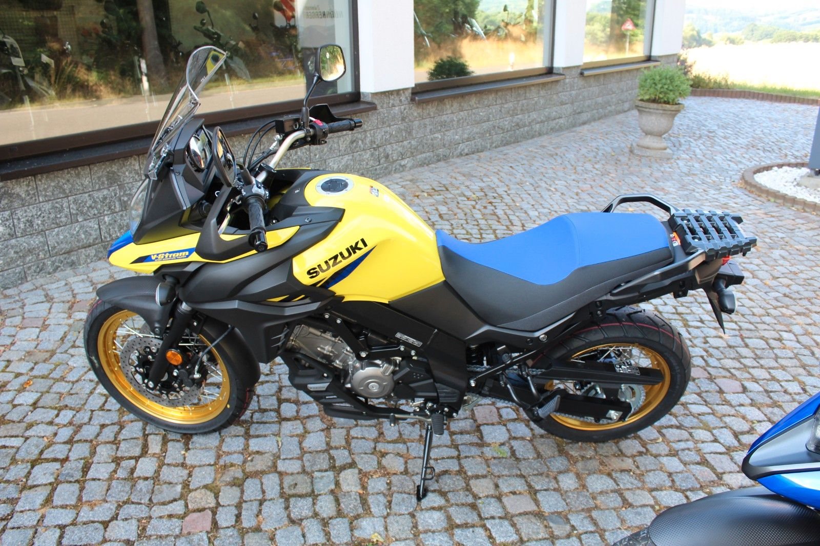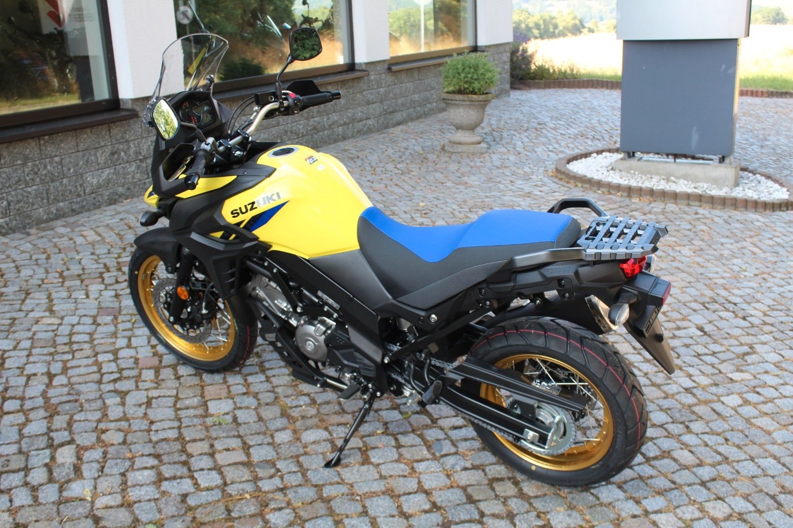 - neue Suzuki DL 650 XT V-Strom mit Speichenrädern, Handschützern und Motorbugspoiler