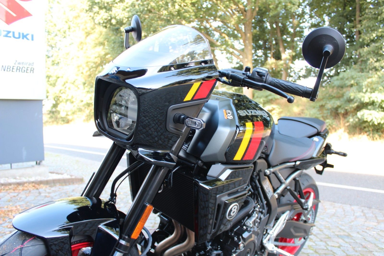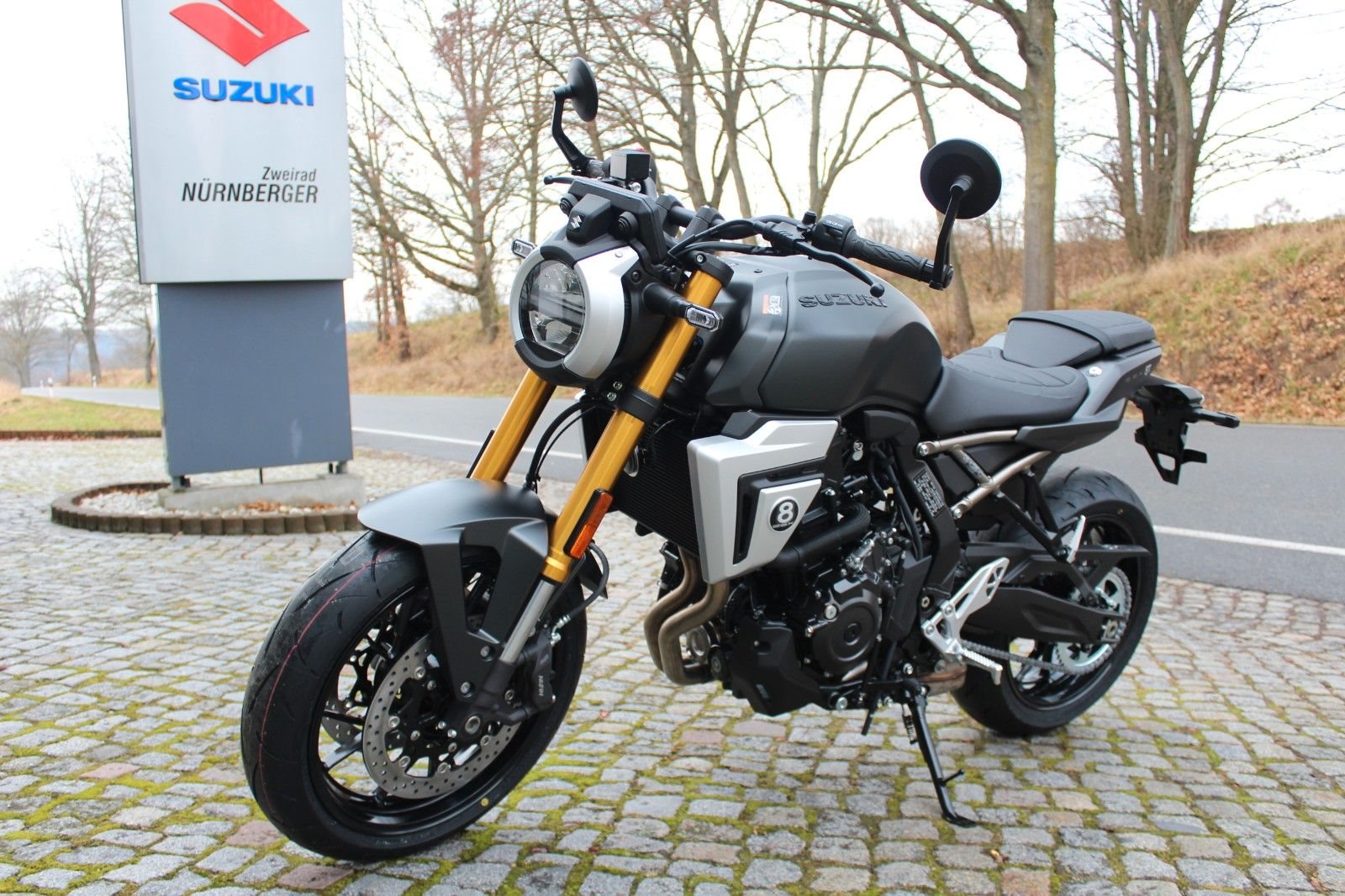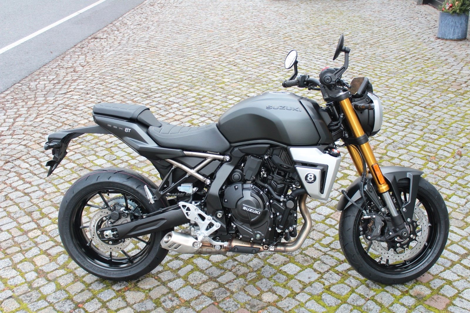 - die GSX-8T in der Farbe schwarz matt bei uns zur Zeit sofort lieferbar für 9690 €